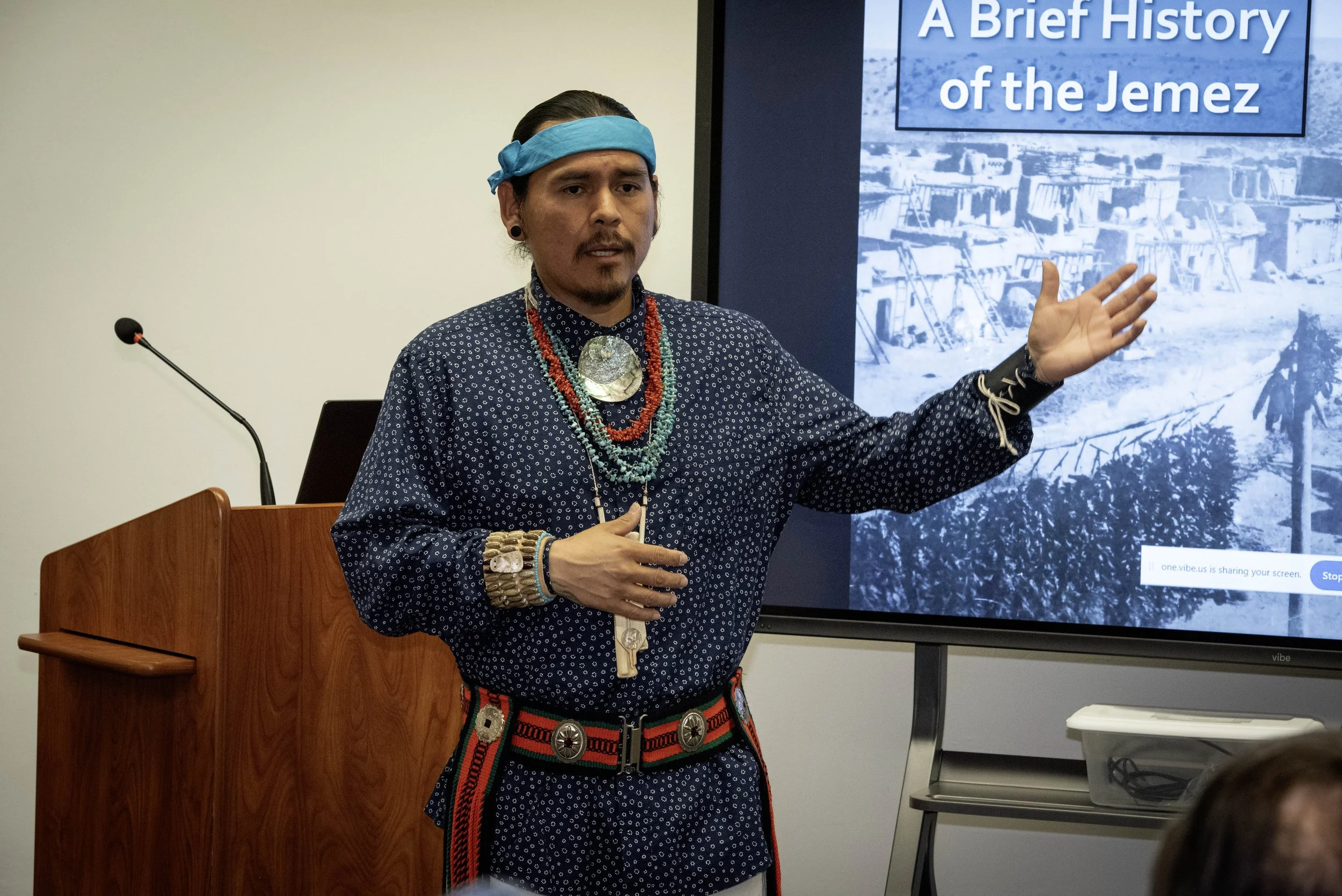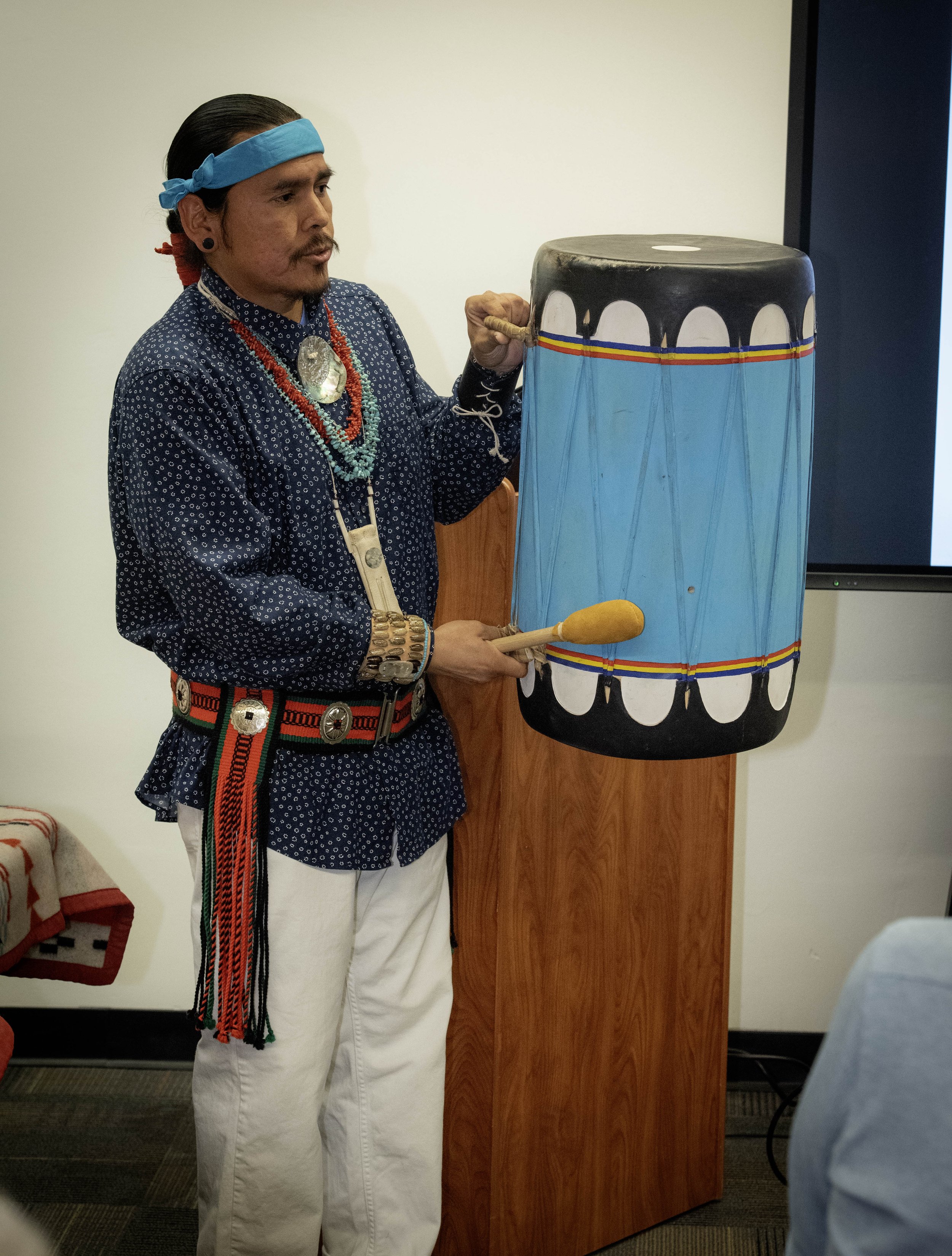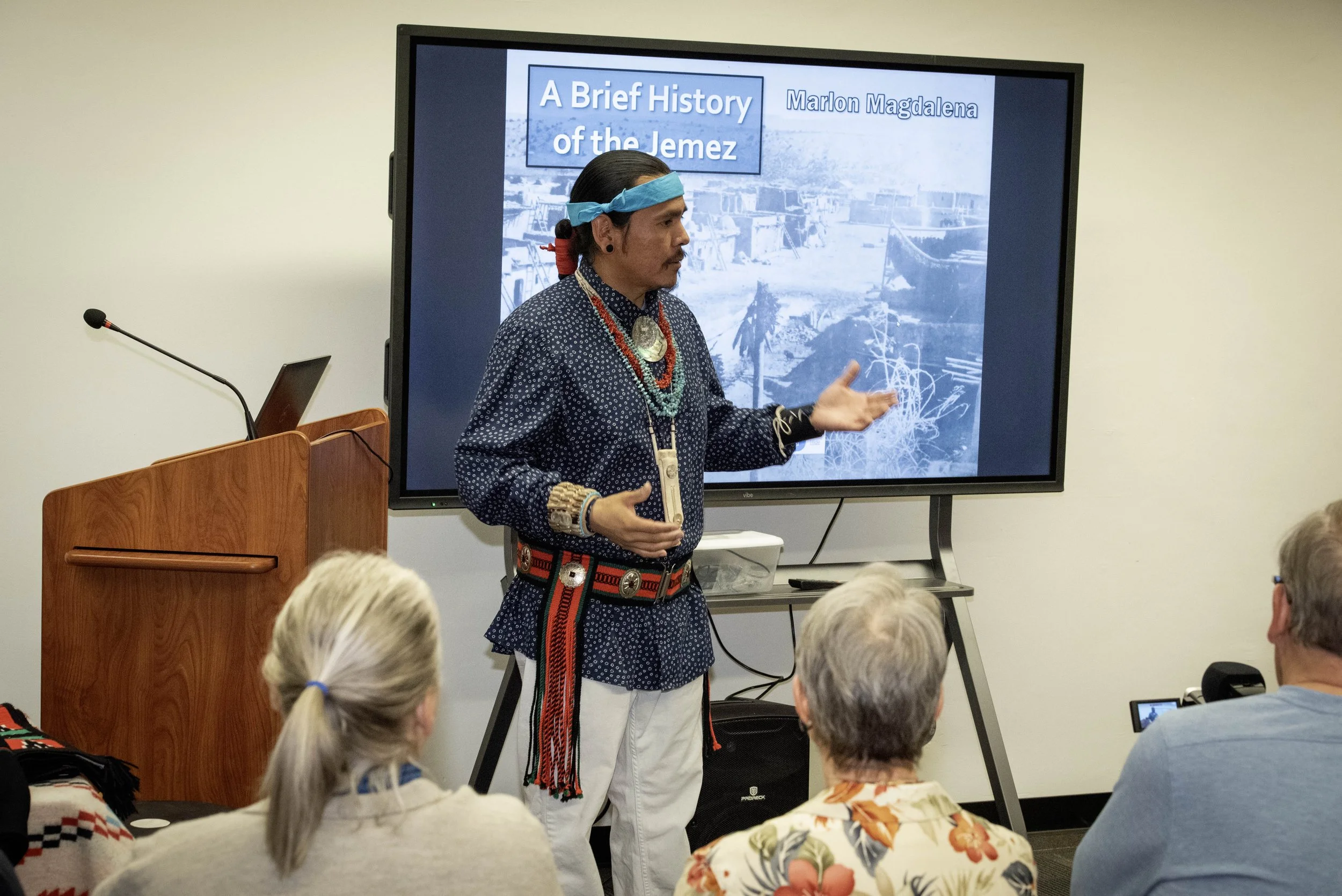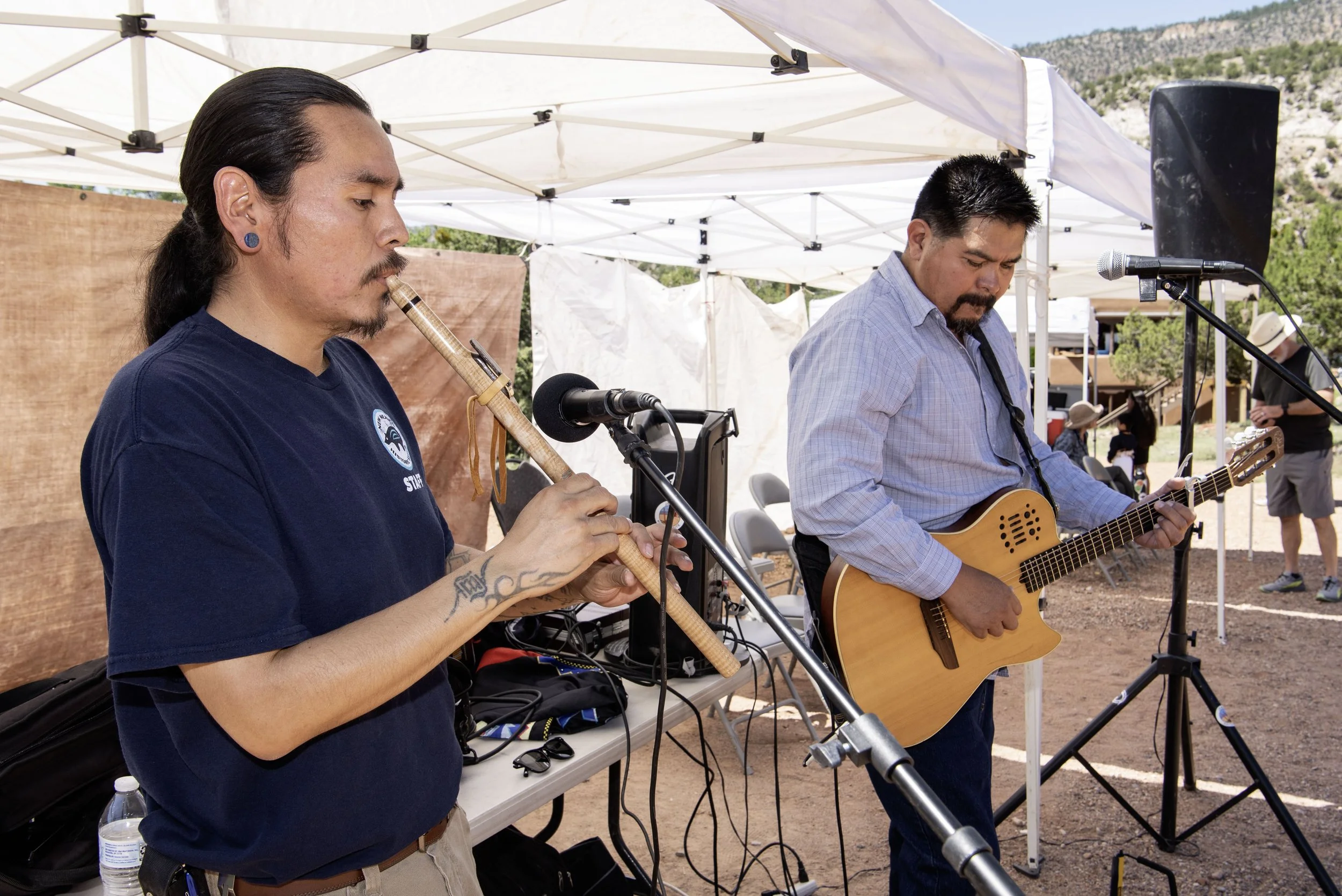 Marlon Magdalena is a cultural educator and artist from the Pueblo of Jemez (Walatowa) dedicated to the preservation and sharing of Indigenous musical heritage. While his hands meticulously carve each flute from raw timber, his primary mission is the education of the public through the history and spirit of these instruments. Through interactive workshops, cultural presentations, and performances, Marlon serves as a bridge between ancestral Southwest traditions and the modern classroom, ensuring that the voice of the flute remains a living, breathing part of our shared cultural landscape.